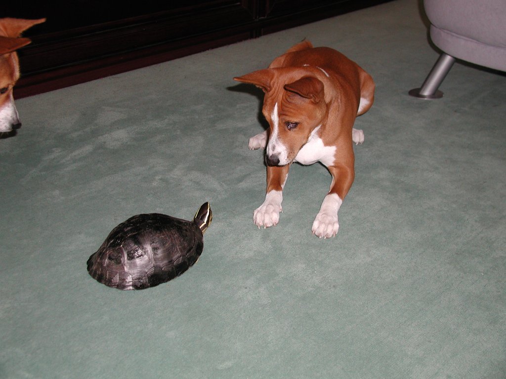 Einmal war sie echt zu nah, da hat er ihr ins Pfötchen gezwickt.